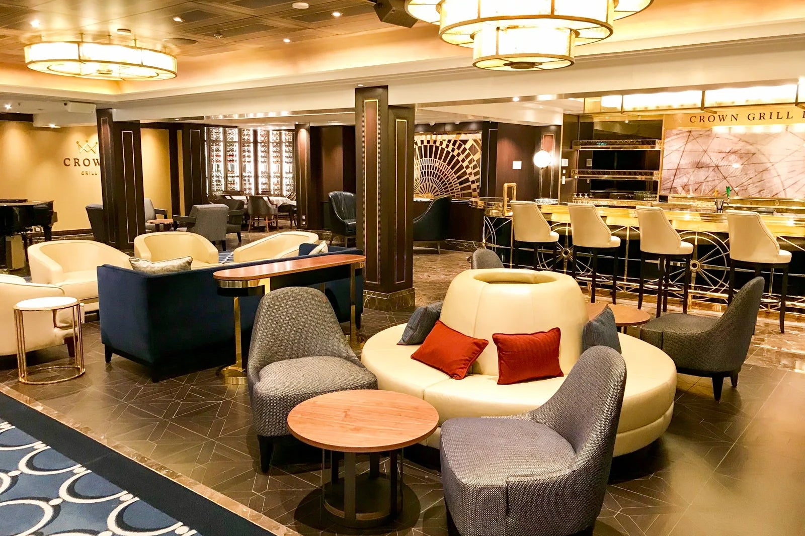 Like the Royal Class ships, Grand Class vessels have interiors that revolve around lively, piazza-style atriums with cafes serving as central gathering places. They also have big theaters (home to production shows), comedy clubs and multiple restaurants and bars spread across their interiors. The top decks feature quiet and relaxing pool and lounge areas where you can enjoy the experience of being at sea without a lot of hustle and bustle — a notable difference from the vibe on a lot of big ships at competing lines.